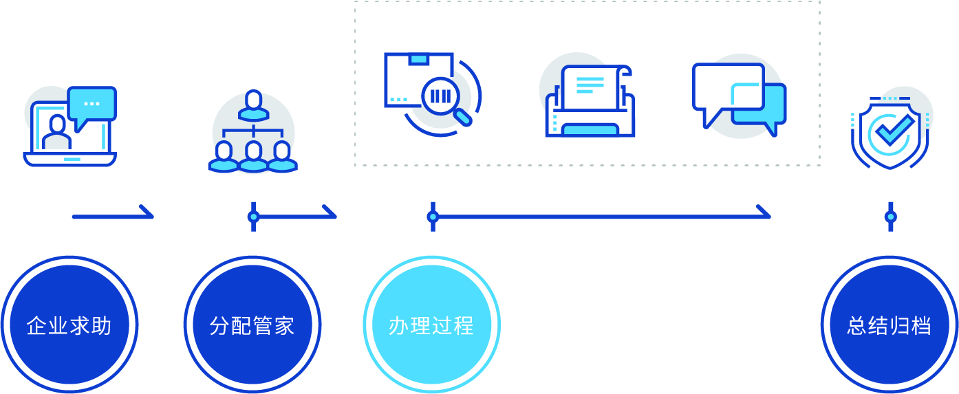 當(dāng)企業(yè)有復(fù)雜問題時,平臺提供業(yè)務(wù)管家為企業(yè)提供全程協(xié)助,并記錄幫辦過程,接收企業(yè)滿意度評價。