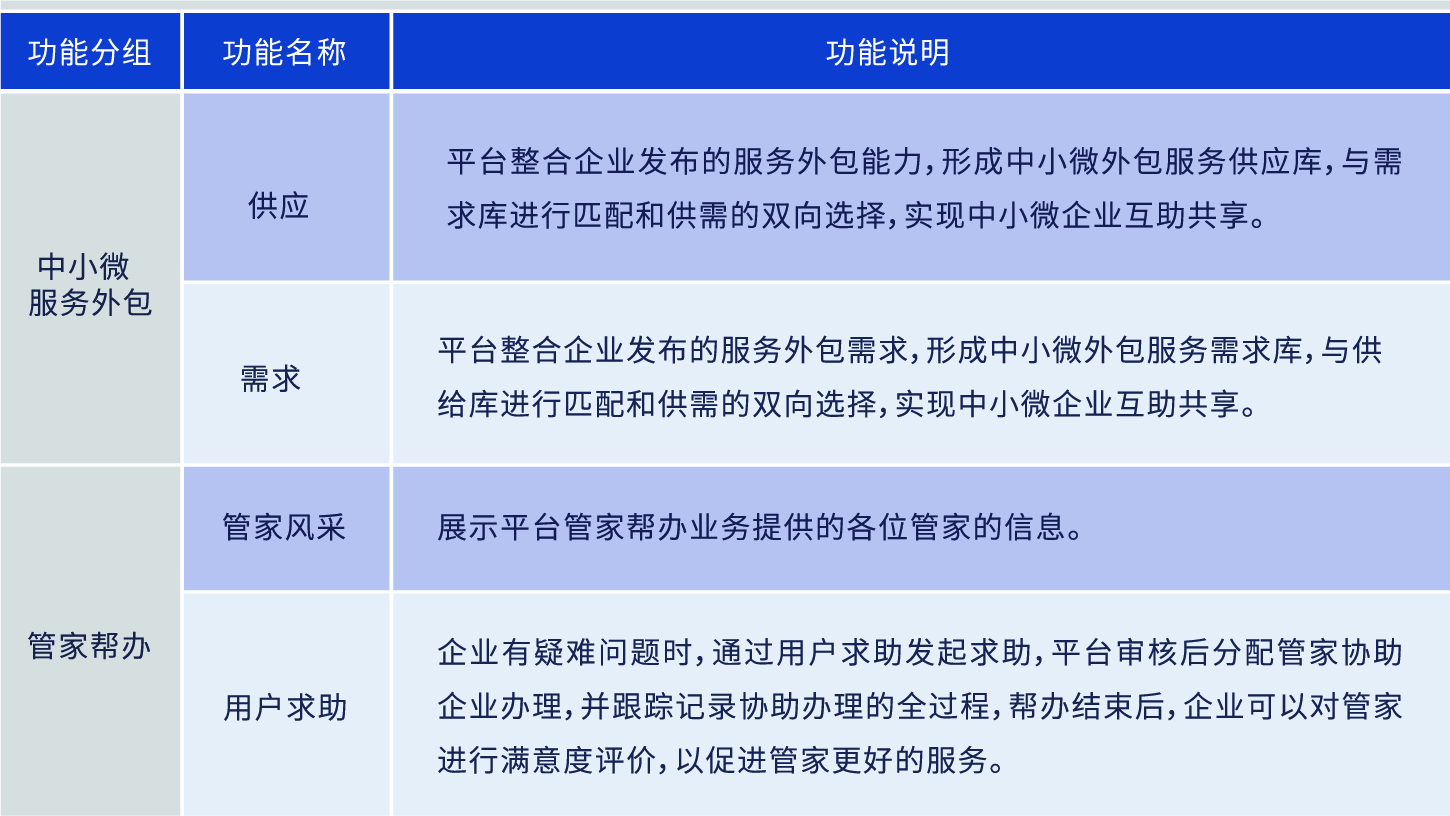 提供中小微企業(yè)供需發(fā)布平臺,實(shí)現(xiàn)供需精準(zhǔn)匹配和雙向選擇,促進(jìn)中小微企業(yè)的互助共享,降低中小微企業(yè)投入成本。